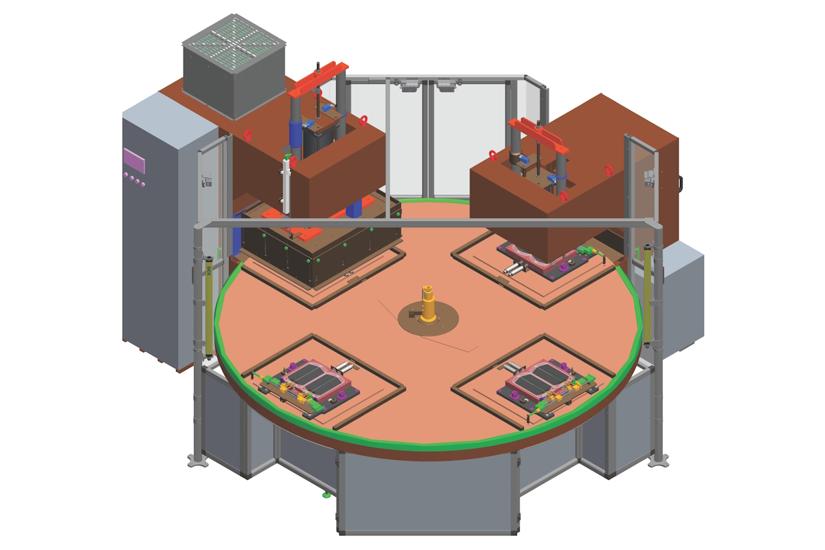 - Tavola rotante a 4 stazioni di lavoro con velocità di rotazione regolabile